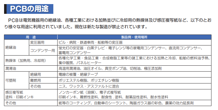 そして、開発から約半世紀経ってから、PCBは、日本において「夢の油」として昭和初期~昭和43年のカネミ油症事件が起きるまで大変重宝されたのです。