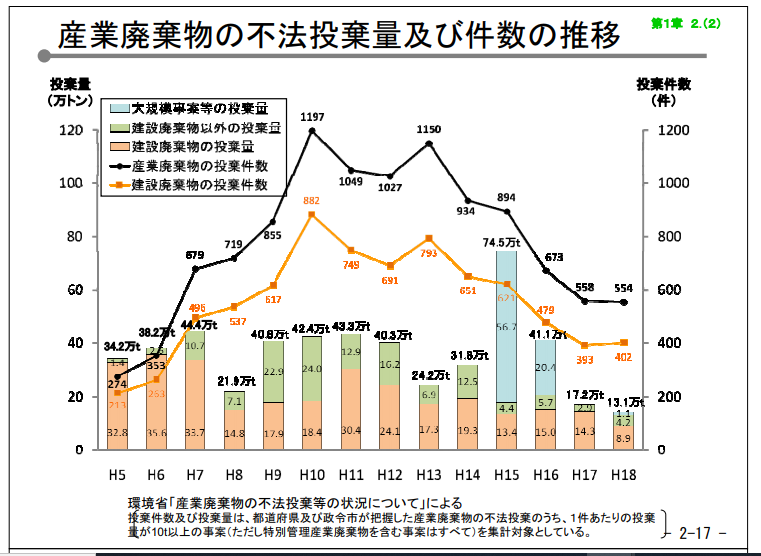 この事件を機に、日本の廃棄物に関する法律(廃掃法)は、ますます厳しくなり急激に不法投棄事案が減少していくこととなります。