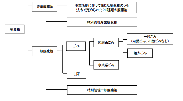 事業活動に伴って発生する廃棄物を産業廃棄物といい、それ以外のゴミを一般廃棄物といいます。