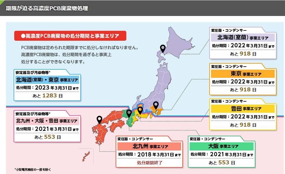 高濃度PCB廃棄物の処分期限が、迫っております。