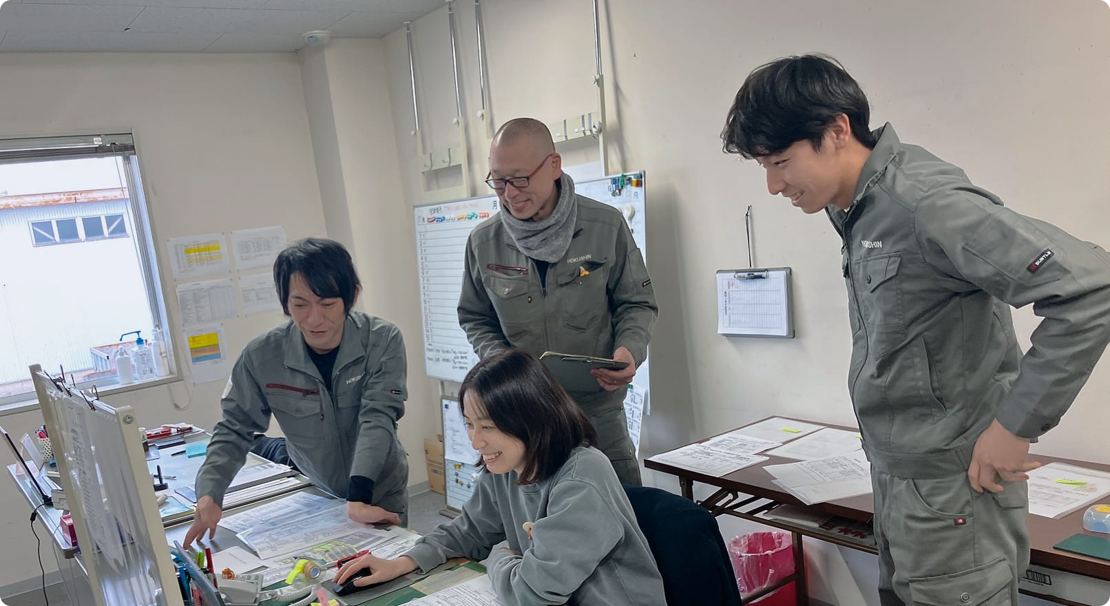 フォークリフトをはじめとする免許・資格も会社負担で取得でき、個々の取り組みや適正に応じたステップアップも可能です。安全作業教育にも力を入れており「どこに危険要素があるか」「どう対策すればよいか」について、みんなで意見を出し合う場を設けています。