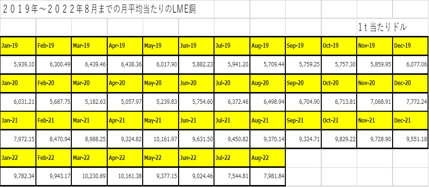 中でも電気自動車(EV)には銅や鉄のみならず、リチウム、コバルト、ニッケル、グラファイトなどのレアメタルが使用され、世界の投資家は銅のみならずこれらの金属にも投資妙味を見出し、その相乗効果もあってさらに銅の買いが殺到したと筆者は解釈しております。この時の銅相場は、月平均で7772ドルをつけ、その後2021年5月には、LME銅が史上最高値の10,161ドルまで上昇しました。ドルを円に直しますと当時の為替レートが平均120円として、1トン当たりの銅の値段(電気銅計算)がなんと、約122万円ということになります。